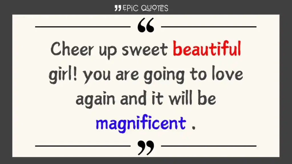 Cheer up sweet beautiful girl! you are going to love again and it will be magnificent .