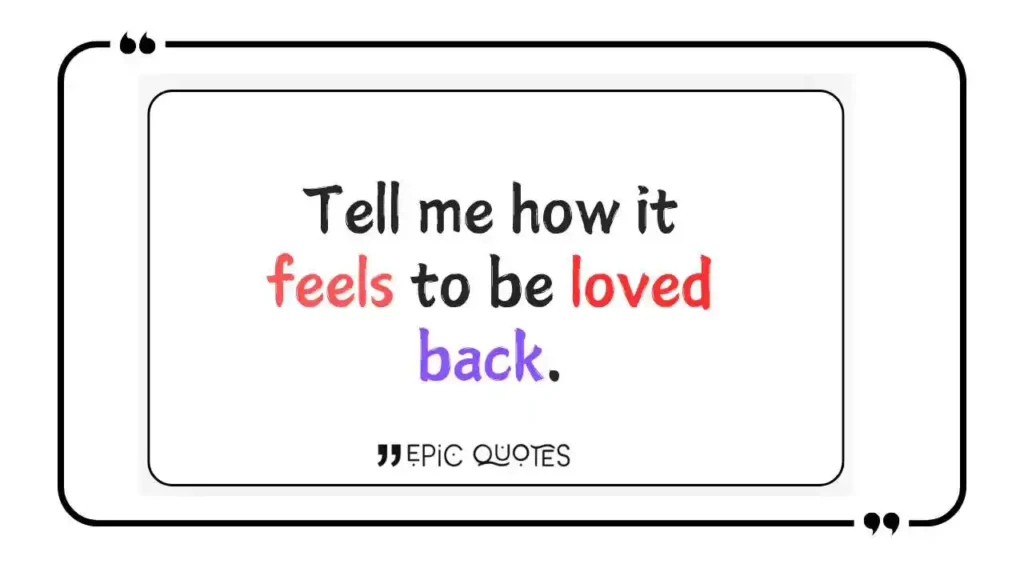 Tell me how it feels to be loved back.